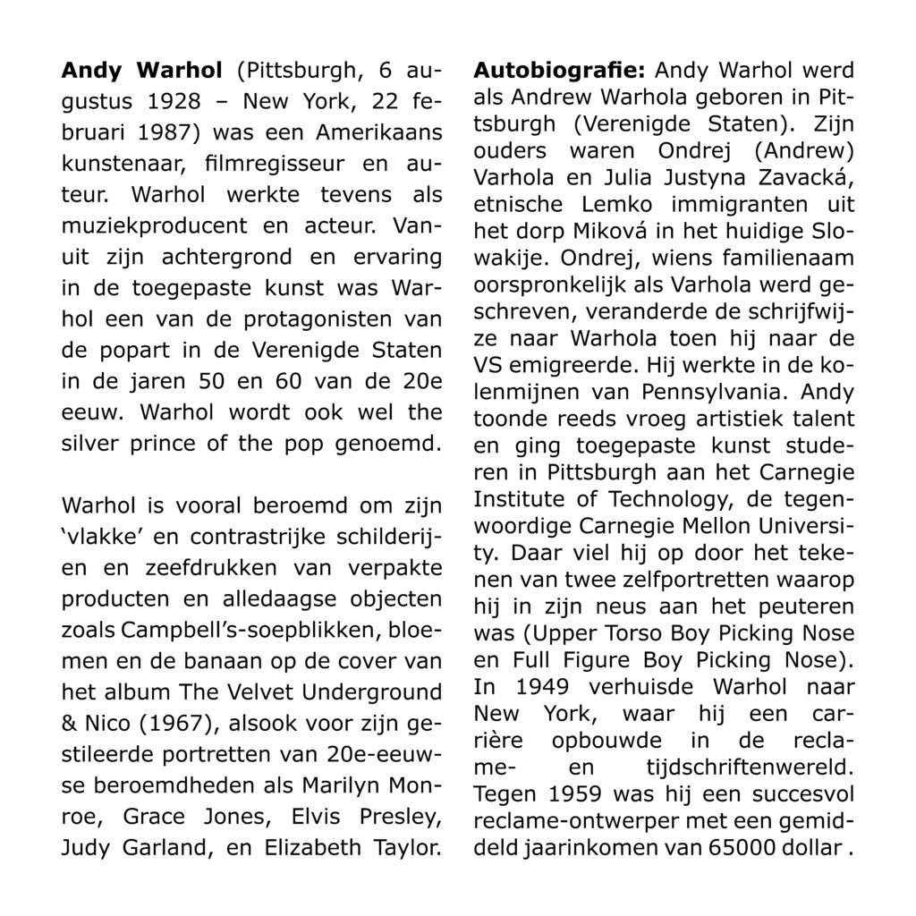 Flyer (Three-part) for a exposition of Andy Warhole.